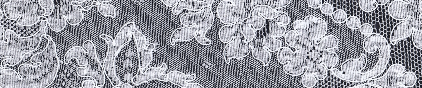 Avec une fabrication 100% Coton, la dentelle de Lyon est tissée sur métier Bobin Jacquard. A la confection, le coton est ennoblie d’un cordon posé sur machine Beyroux.